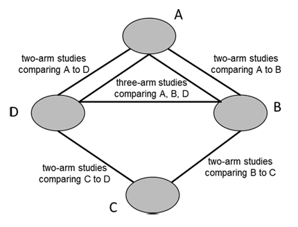At the heart of network meta-analysis methodology is the concept of an indirect comparison. Indirect comparisons are necessary to estimate the relative effect of two interventions when no studies have compared them directly.