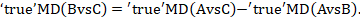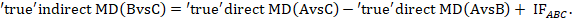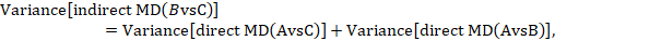 The underlying assumption of indirect comparisons is that we can learn about the true relative effect of B versus C via treatment A by combining the true relative effects A versus B and A versus C. This relationship can be written mathematically as