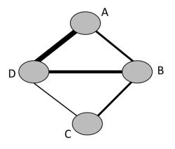 Figure 11.2.c Example of deriving indirect estimate that compares the effectiveness of ‘doctor’ (B) and ‘pharmacist’ (D) in providing dietary advice through a connected loop