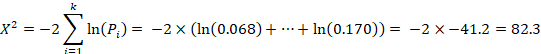 is the total number of P values. This formula can be implemented using a standard spreadsheet package. The statistic is then compared against the chi-squared distribution with 26 (