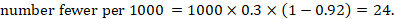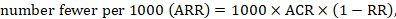 As an example, suppose the risk ratio is RR = 0.92, and an ACR = 0.3 (300 per 1000) is assumed. Then the effect on risk is 24 fewer per 1000: