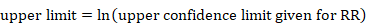 The process of obtaining SE for ratio measures is similar to that for absolute measures, but with an additional first step. Analyses of ratio measures are performed on the natural log scale (see Section 6.1.2.1). For a ratio measure, such as a risk ratio, odds ratio or hazard ratio (which we denote generically as RR here), first calculate