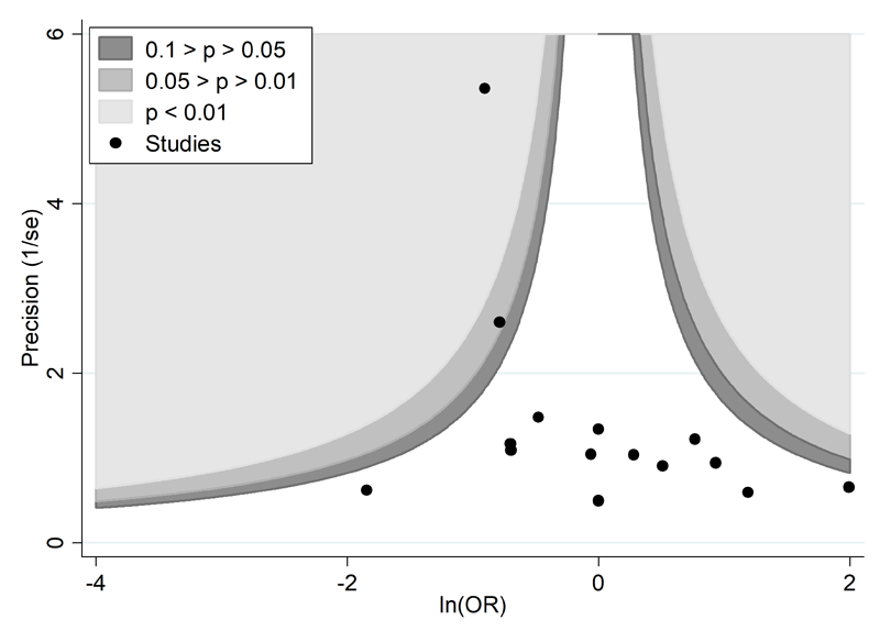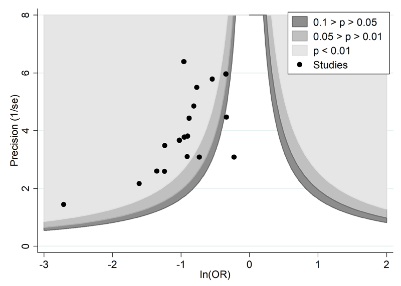 Peters JL, Sutton AJ, Jones DR, Abrams KR, Rushton L. Contour-enhanced meta-analysis funnel plots help distinguish publication bias from other causes of asymmetry. J Clin Epidemiol 2008; 61: 991-996.
