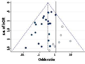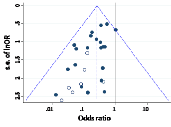 Sterne JAC, Sutton AJ, Ioannidis JPA, Terrin N, Jones DR, Lau J, Carpenter J, Rücker G, Harbord RM, Schmid CH, Tetzlaff J, Deeks JJ, Peters J, Macaskill P, Schwarzer G, Duval S, Altman DG, Moher D, Higgins JPT. Recommendations for examining and interpreting funnel plot asymmetry in meta-analyses of randomised controlled trials. BMJ 2011; 343: d4002.