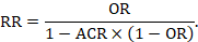 As an example, suppose the risk ratio is RR = 0.92, and an ACR = 0.3 (300 per 1000) is assumed. Then the effect on risk is 24 fewer per 1000: